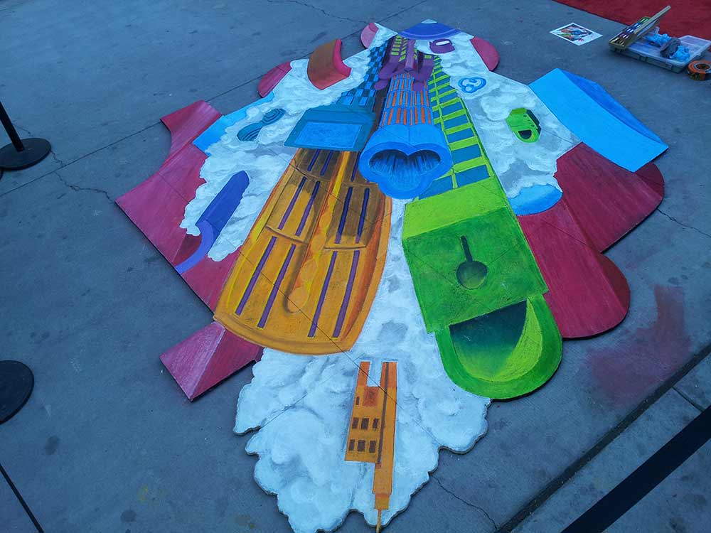 Today artists like Sean Fitzpatrick have added a 3D element to these expressive works. This technique, known as anamorphic distortion, allows the viewer to experience the artwork in full 3 dimensions when viewing it from a specific angle. To learn more about 3D sidewalk art or street painting please visit our contact page and send us a message