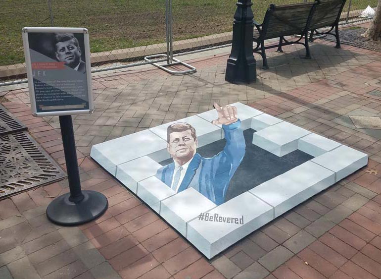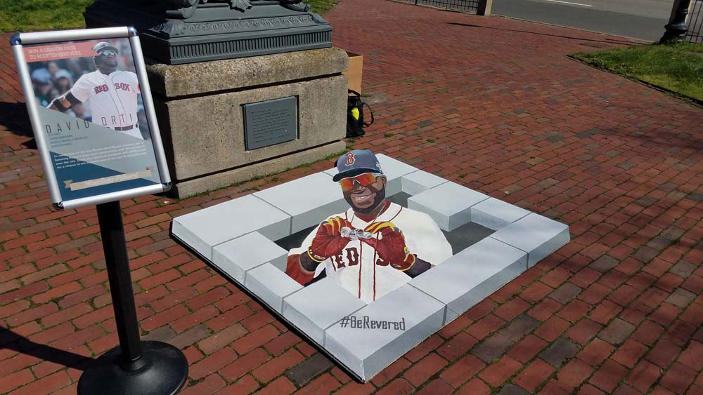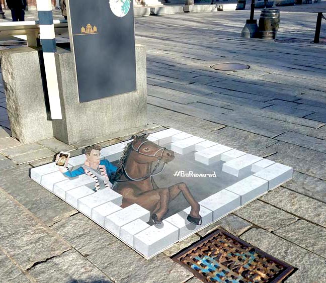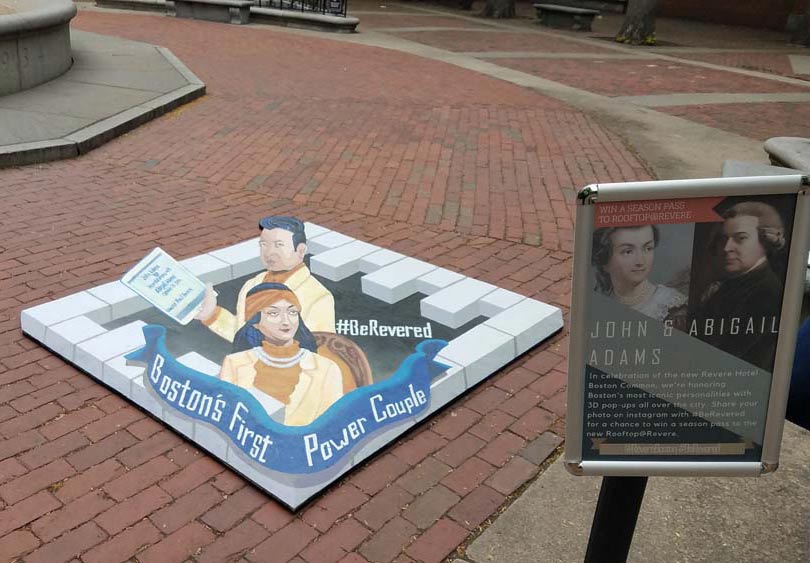 When the Revere Hotel in Boston was looking to celebrate their recent renovation they turned to Fitzysnowman Studios. The initial idea was to create several 3D street art paintings of iconic figures at landmark locations around the city. Because Boston is a historic city, there are restrictions in place that are designed to protect to these historic locations. Naturally, I suggested using my Custom Modular 3D Street Art. Because the artwork is portable and reusable it can be displayed over and over in separate locations. This feature alone saved the client thousands of dollars compared with traditional street painting. The best part of my custom modular 3D street art is that the pricing included ownership of all finished artwork. The artwork continues to be displayed at various locations in the hotel and can easily be transported to other locations outside the hotel for future promotion opportunities Here's some of the other benefits listed below.