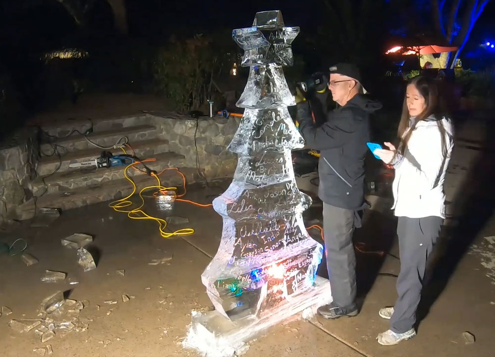 Southern California might not seem like the most appropriate location for live ice sculpture, but it is actually very popular in winter months, especially since many residents have little exposure to snow and ice on a daily basis. We drew huge crowds every night and never created the same sculpture twice, something that returning guests certainly appreciated
