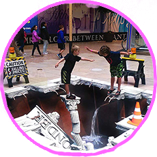 3D murals typically refer to vertical surfaces and are either printed or painted. This section is referring to the hand painted 3D murals. For information on 3D printed murals see the previous section. When considering a 3D mural there are several factors to consider. The size and location of the surface as well as the type of surface and condition of the surface is factored in. Next I look at the surrounding space and available viewpoints from which the artwork will be best viewed for maximum 3D effect. Pricing is based on overall size and ease of access.